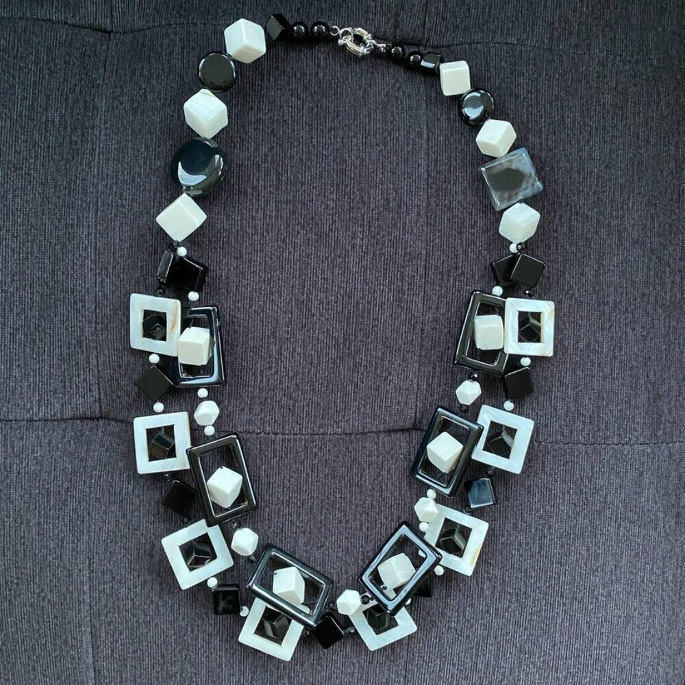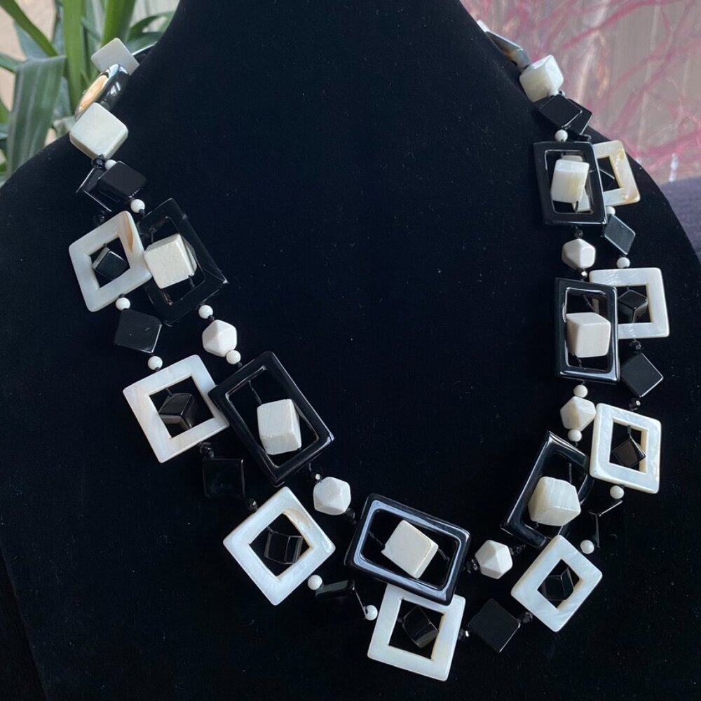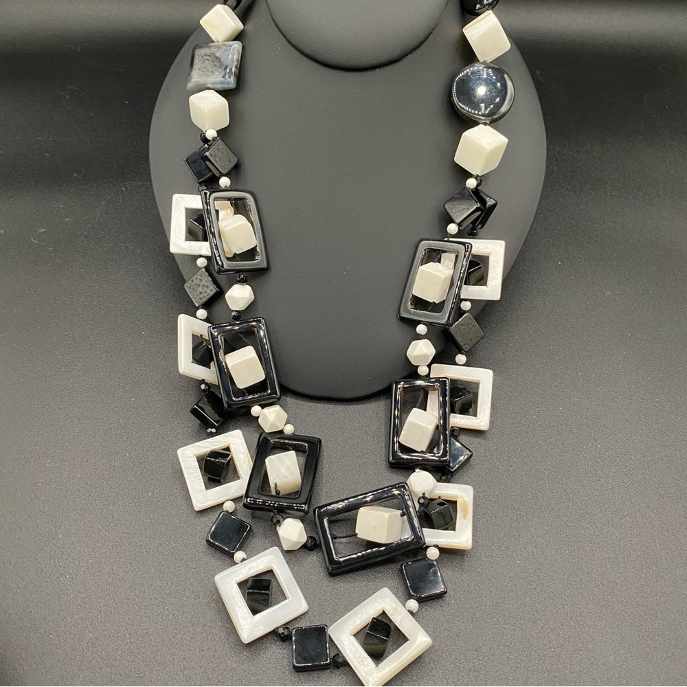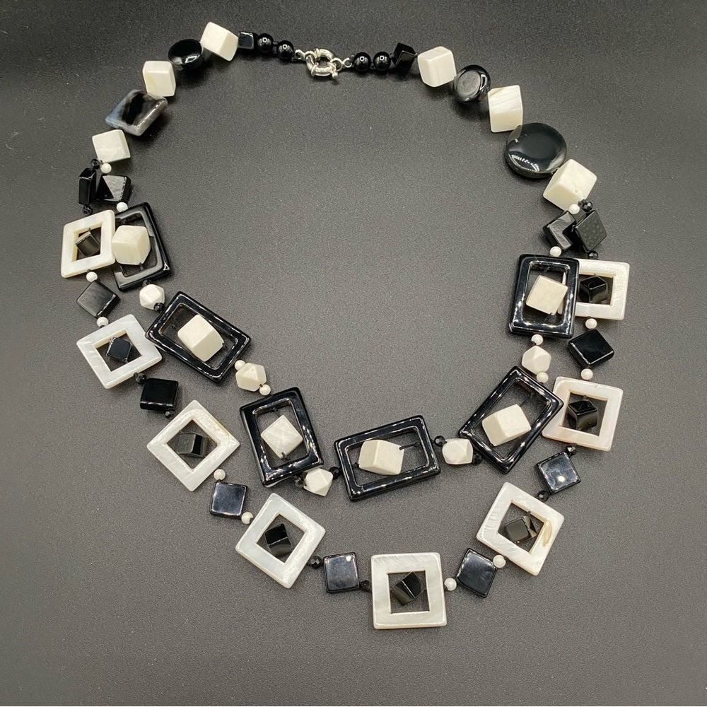 Absolutely gorgeous high quality layered necklace in black and white with spring ring closure