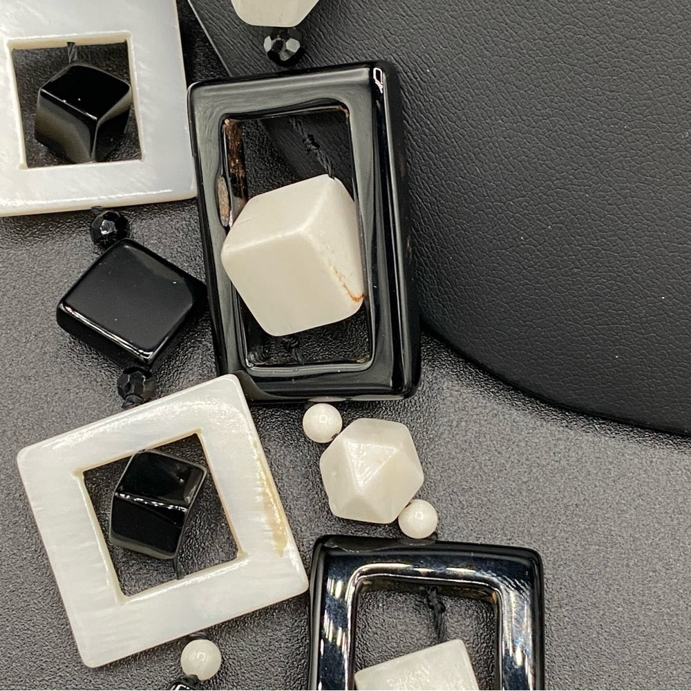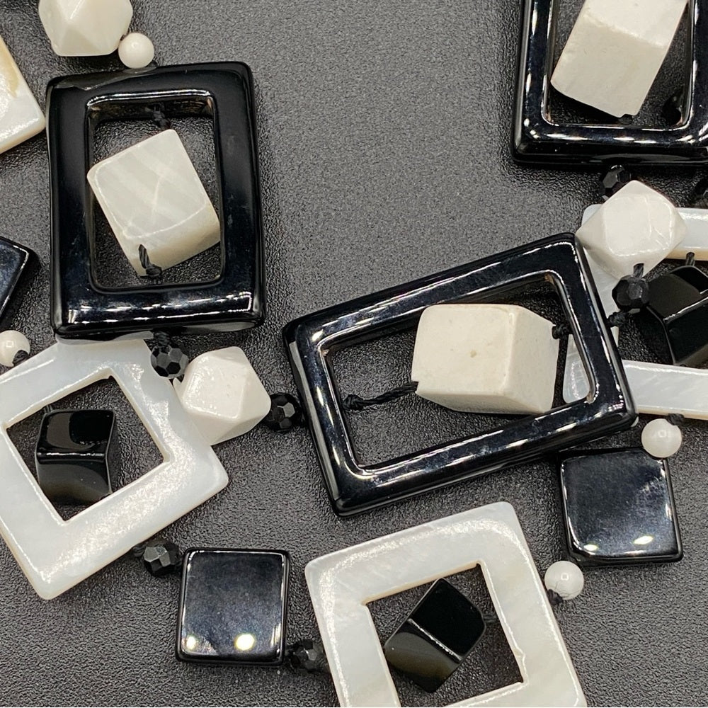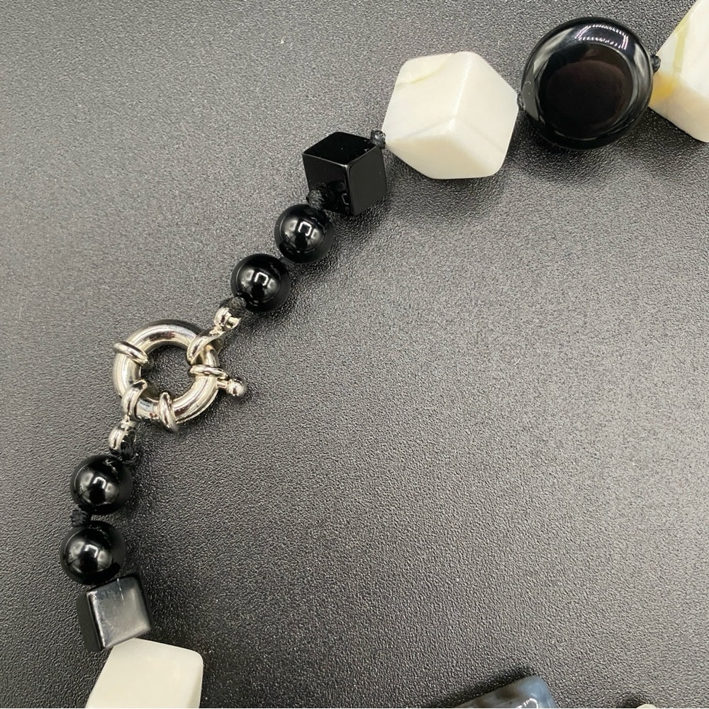 Stunning Black & White High End Statement Necklace Made of Marble and Onyx Stone