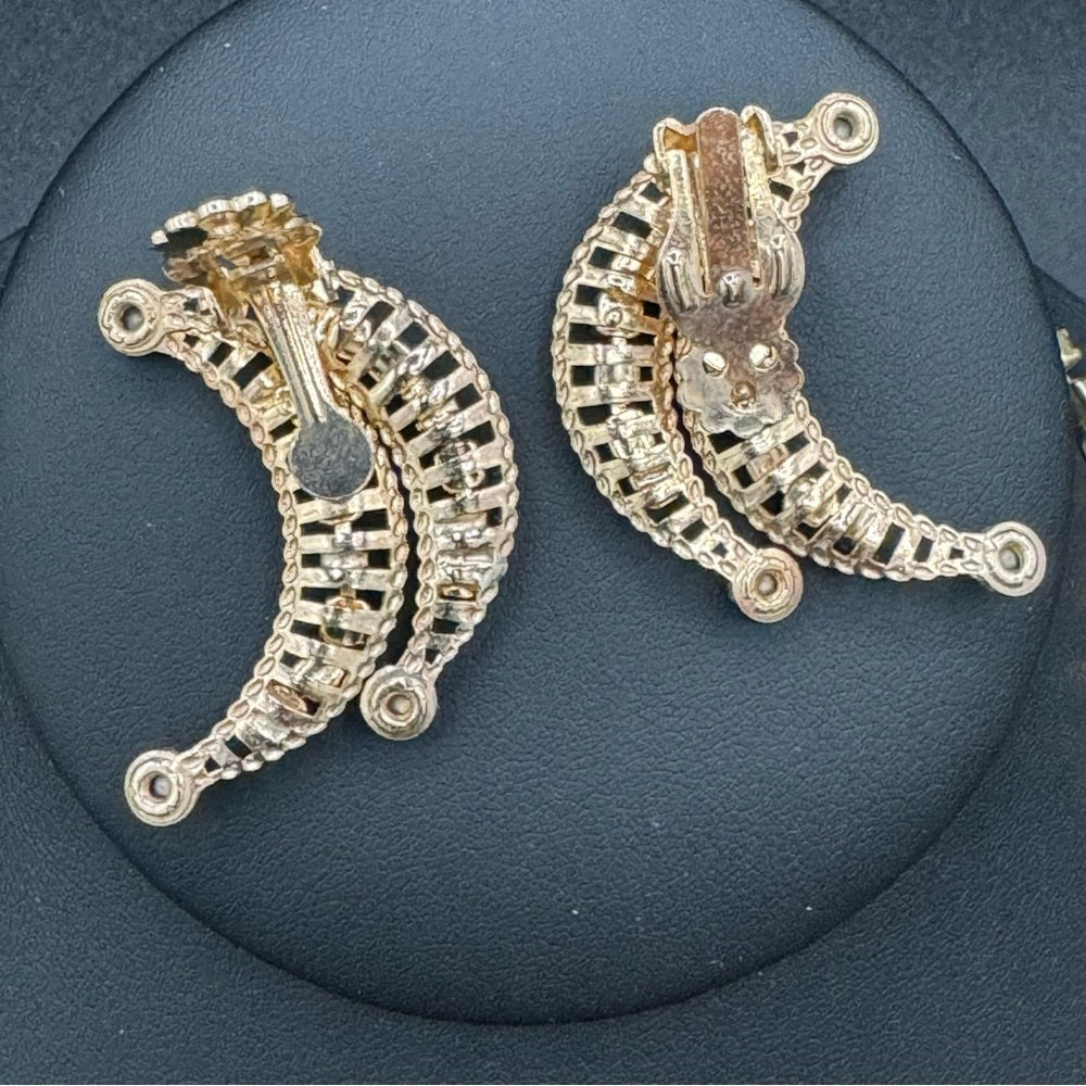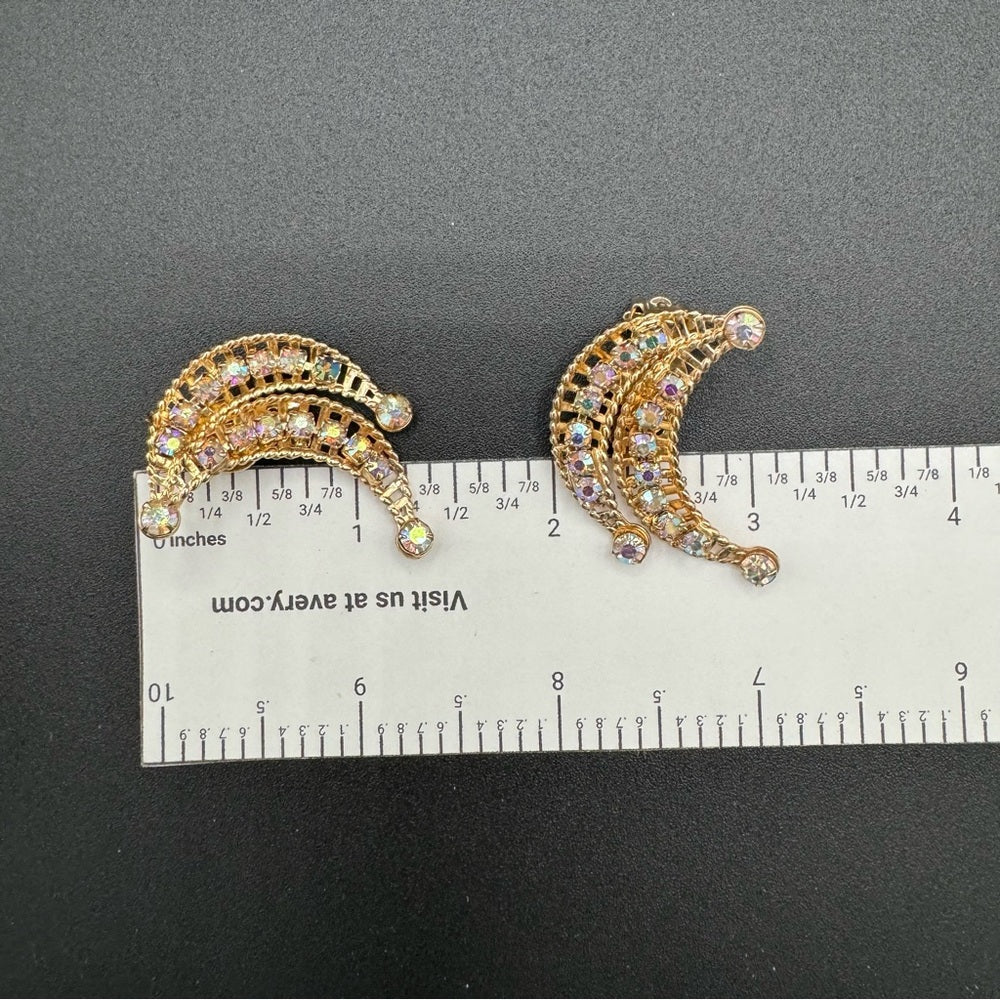 The necklace features a stunning bib design, with rows of shimmering crystals and luminous pearls cascading down the neckline. The clip on earrings match perfectly, adding a touch of glamour to your look.