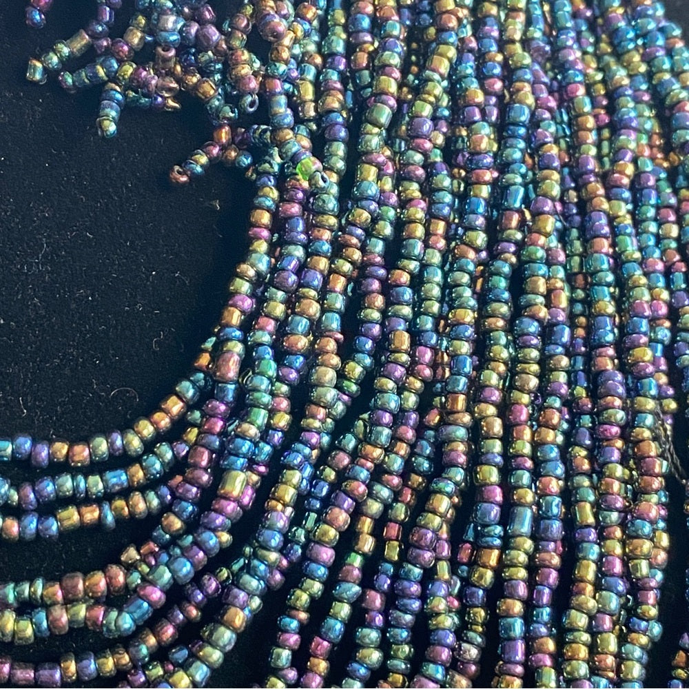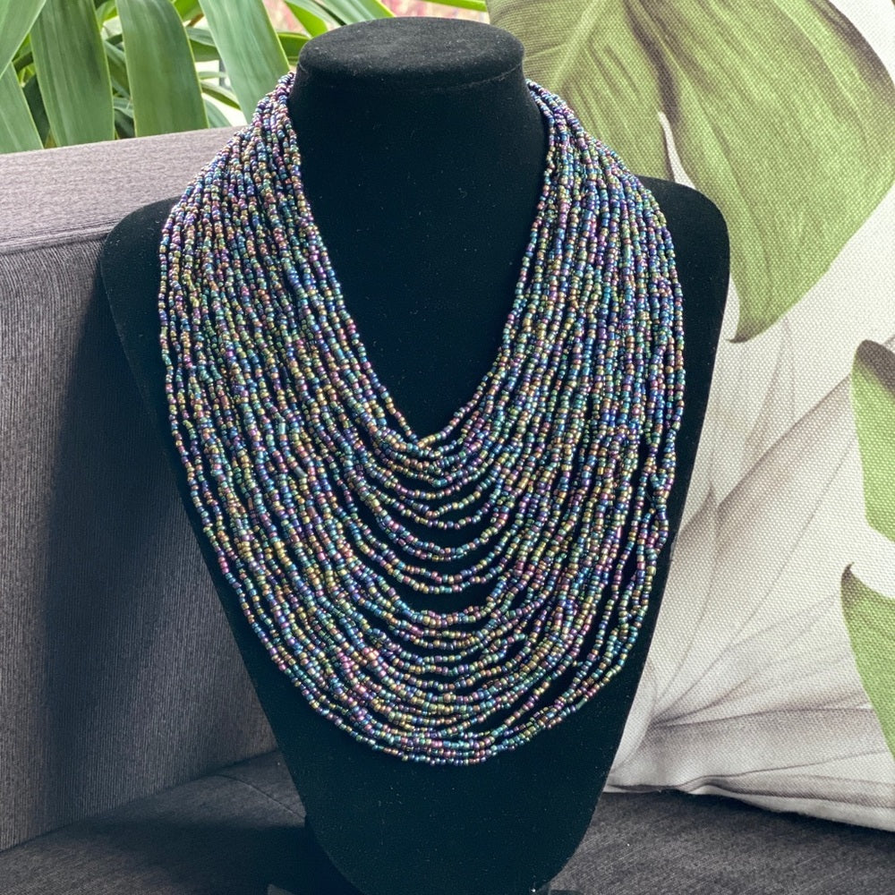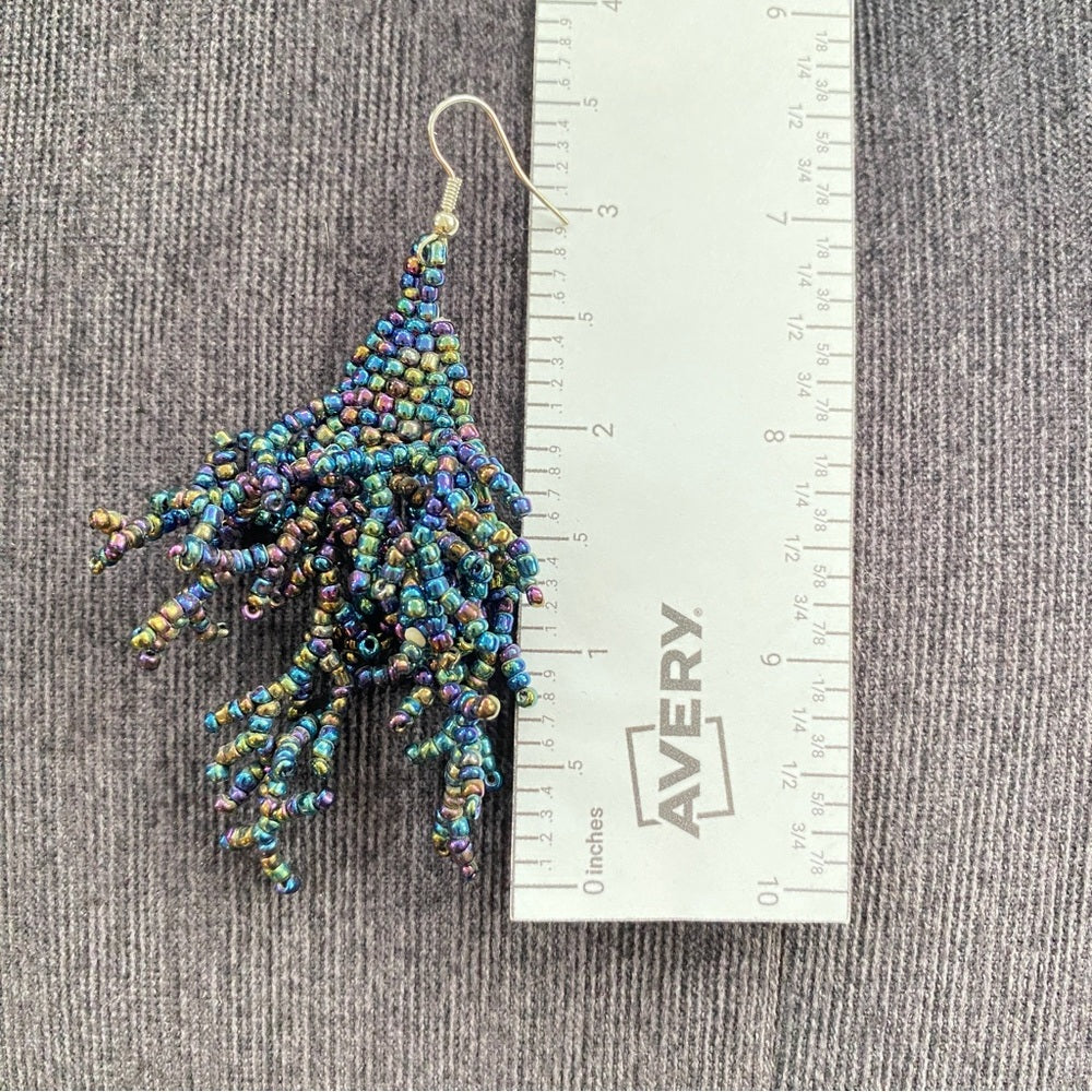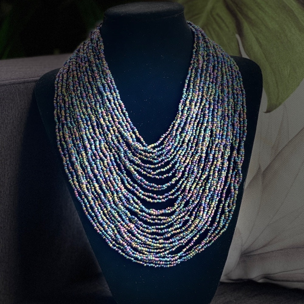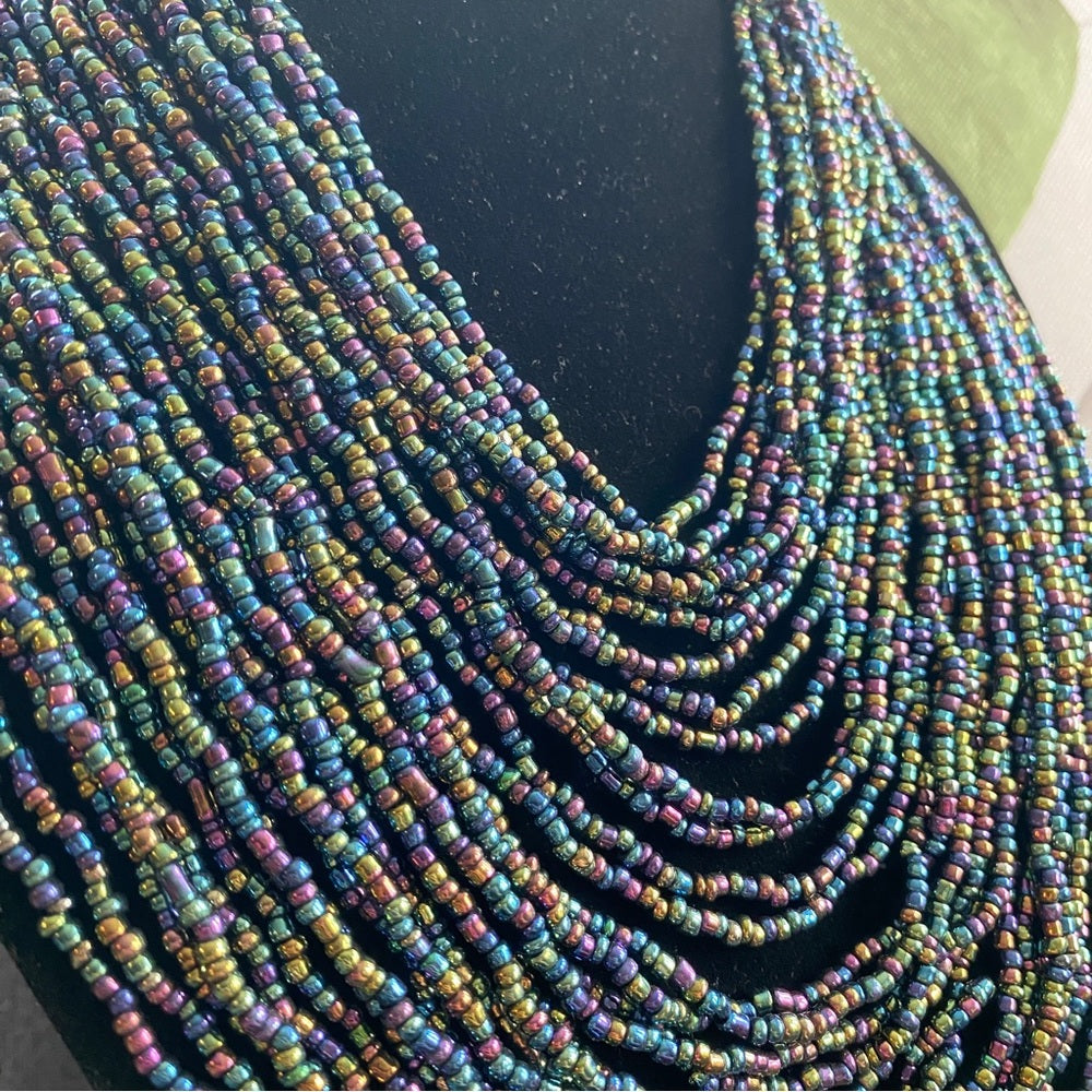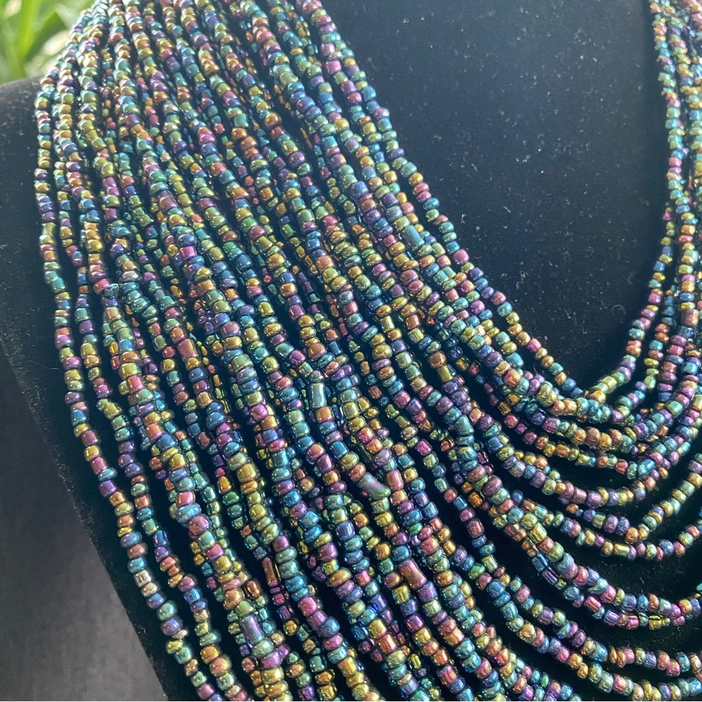 Stunning Iridescent Multilayered Seed Bead Necklace and Dangly Coral Earring Set