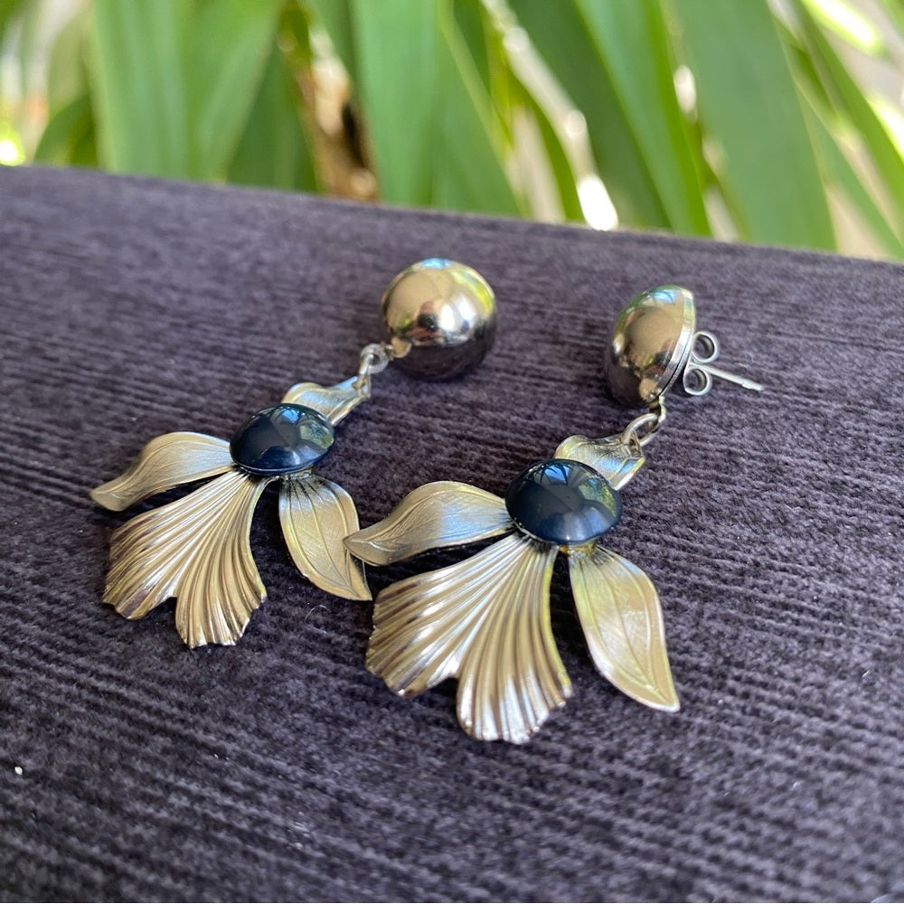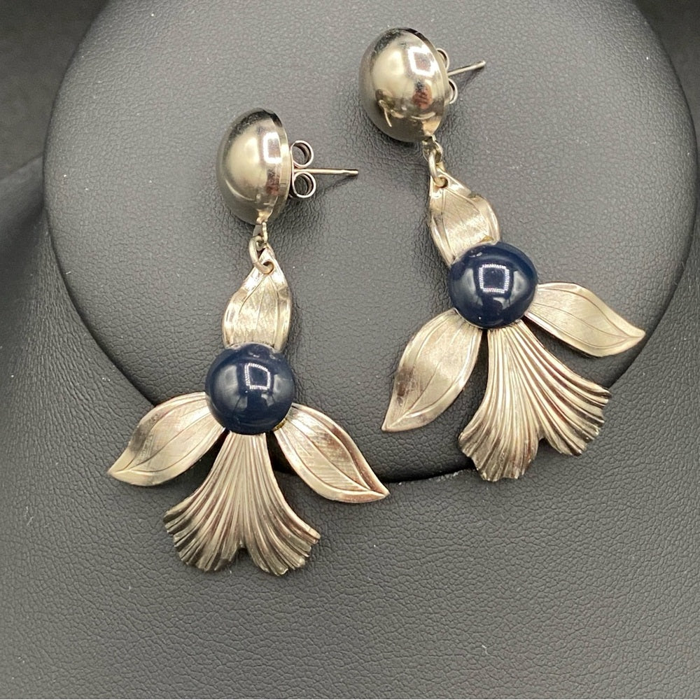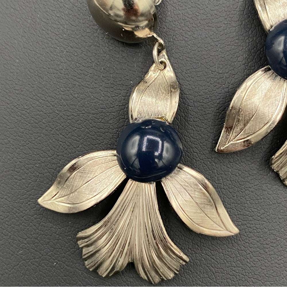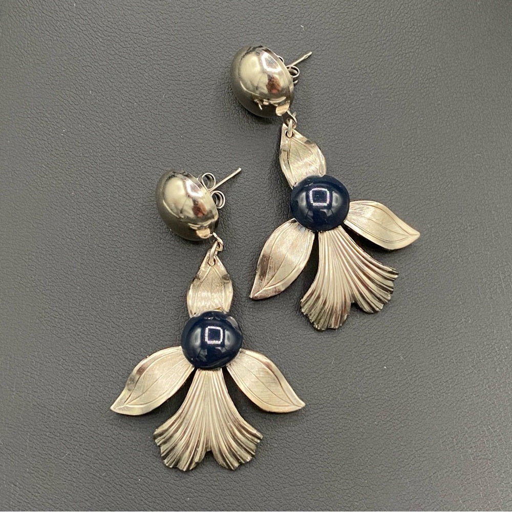 Vintage Fleur De Lis and Navy Metal Earrings