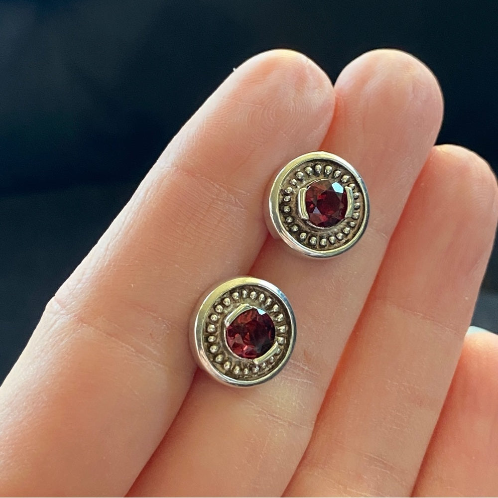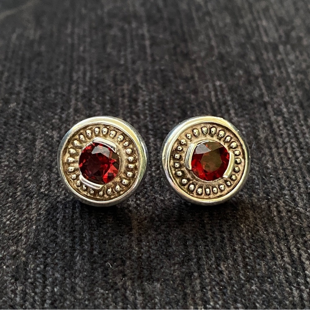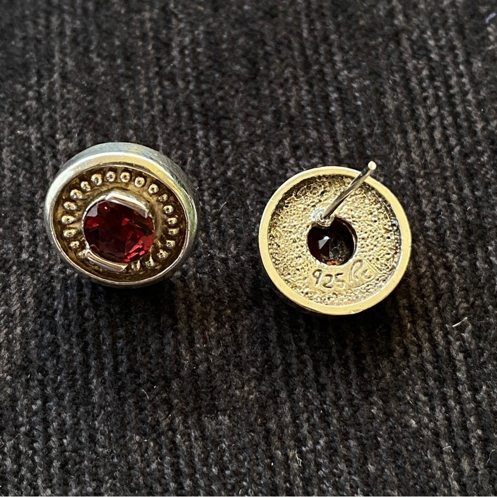 Vintage Garnet Stud Earrings set in Silver Marked 925