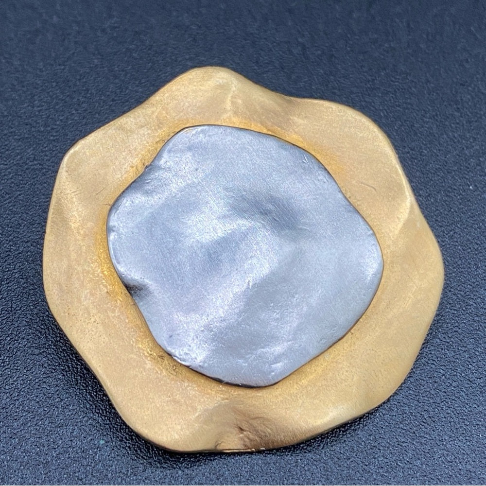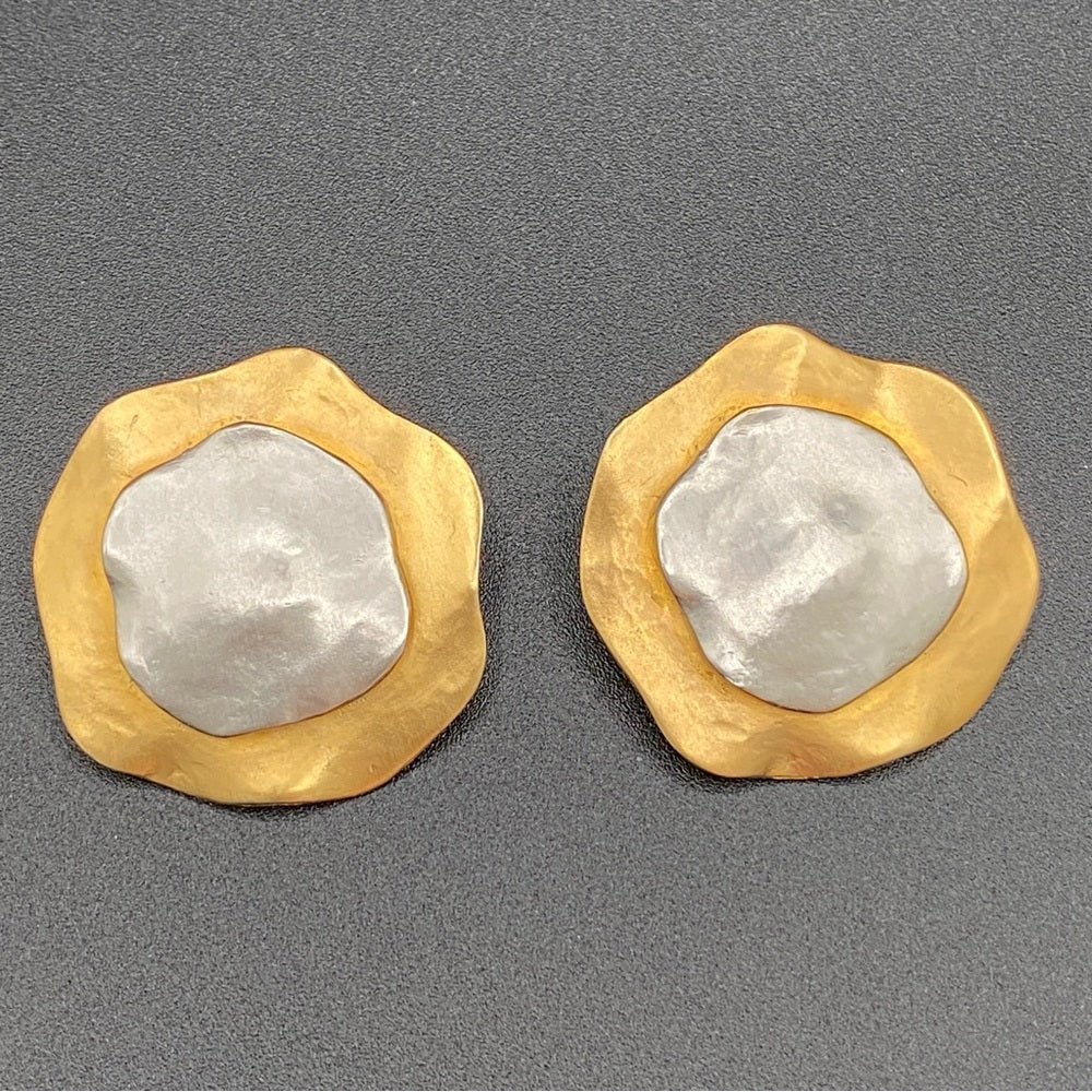Step up your accessory game with these vintage 1980s two-toned brushed silver and gold disc earrings. They're the perfect throwback to bold '80s fashion—glamorous, eye-catching, and totally versatile. Whether you're dressing up for a party, adding some flair to a business casual outfit, or just want to rock a unique look, these earrings have you covered.
