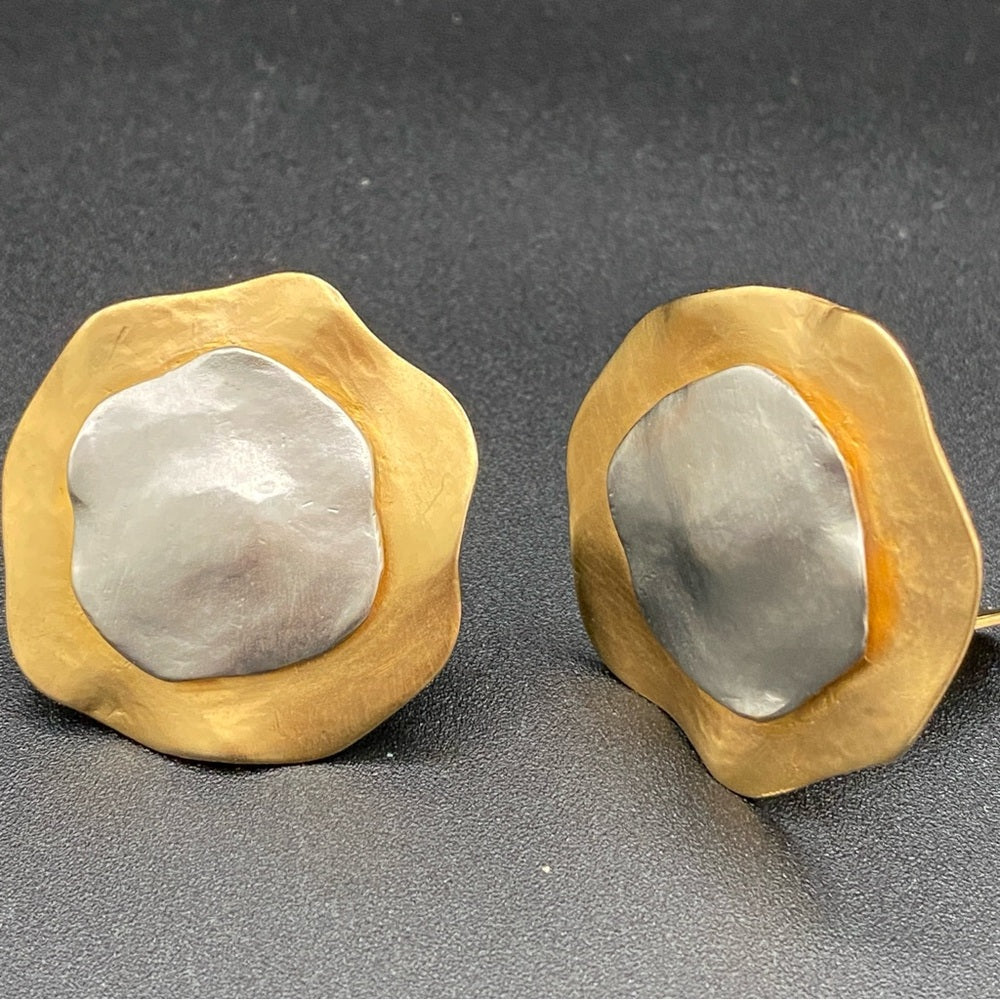 Vintage Modernist Glam Two Tone Textured Metal Earrings
