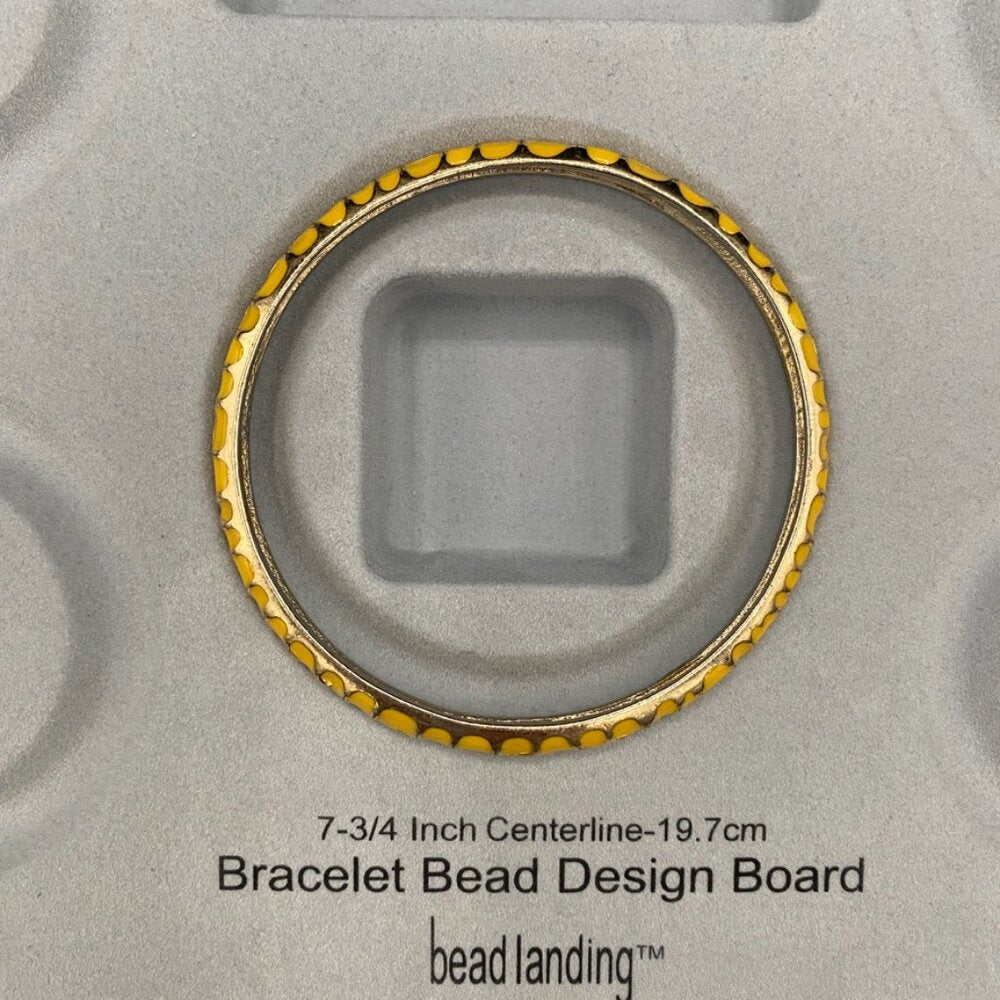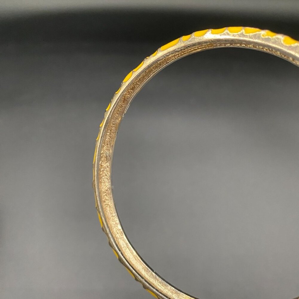 Yellow Enamel and Gold Stacking Bangle Bracelet with Geometric Print